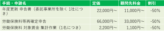 - 注:社労士委託の場合の費用は、③(別表2)となります